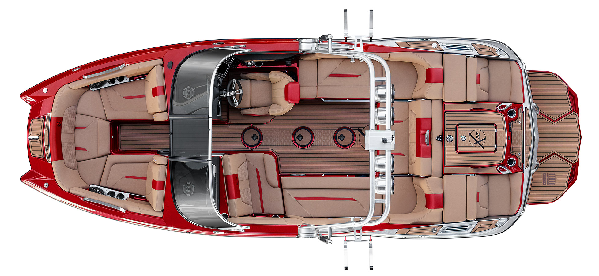 Now is the time and luxury performance is the mission. The X22 brings together the best of everything in a 16 passenger, 22 foot package. The tech dash features dual screens for ultimate control. The layout is comfortable and built for those long days on the water. The wake and surf performance will drop jaws thanks to the 3550 pounds of ballast paired with the versatile Gen 2 Surf System. Enjoy 4 minute fill times with FastFill high speed pumps, and the responsive Switchback Ballast Tank lets your step up your summer with stunning ease.